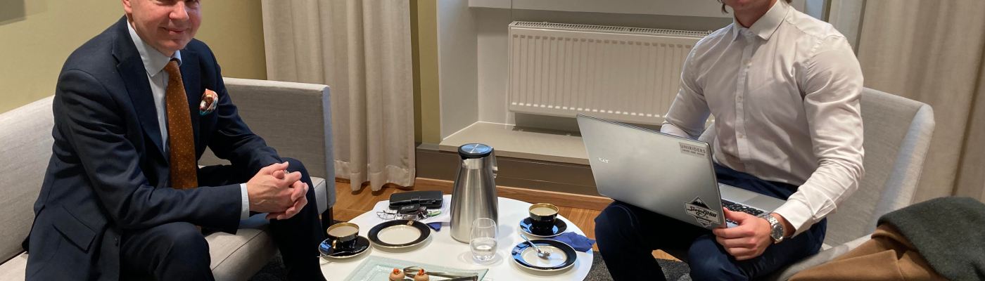 Hälläpyörä sai syksyisenä ja tihkusateisena lokakuun päivänä upean mahdollisuuden haastatella lehden entistä päätoimittajaa ja osakuntamme kunniajäsentä Pekka Haavistoa ulkoministeriön arvokkaissa tiloissa Katajannokalla.